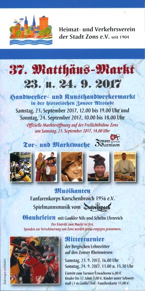 37. Matthäusmarkt in Zons (Handwerkermarkt) - 23.9 - 24.09.2017