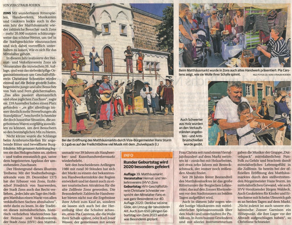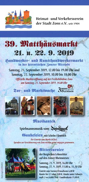 39. Matthäusmarkt in Zons (Handwerkermarkt) - 21.9 - 22.09.2019